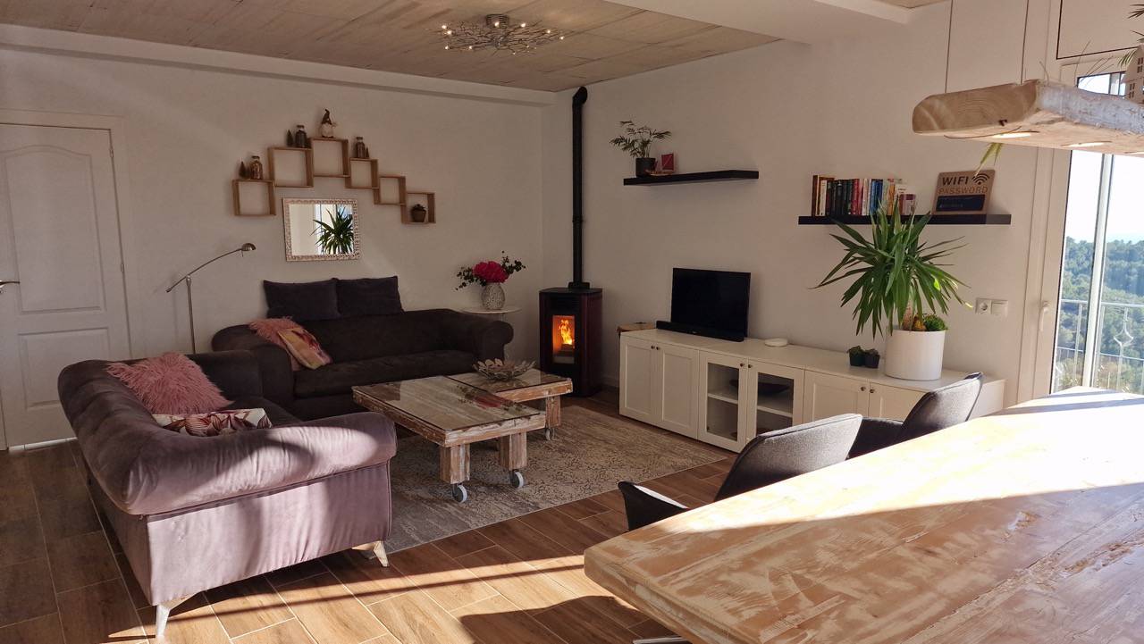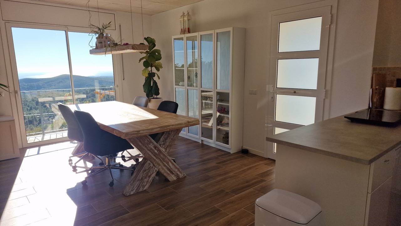 We are renting out our contempory villa including a separate apartment, with a beautiful view on mountains, Vilanova I la Geltrú and the sea. A luxurious house with a private saltwater pool. Two entrances, two living rooms and two dining rooms. In total 5 bedrooms and 4 bathrooms, sleeps in total 10-persons.